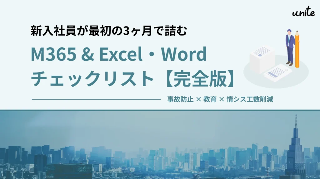 新入社員の自己チェック、研修前後の理解度チェック、OJT時の指導ポイント確認、情シス・管理部門の問い合わせ予防にご活用いただけるチェックリストです。