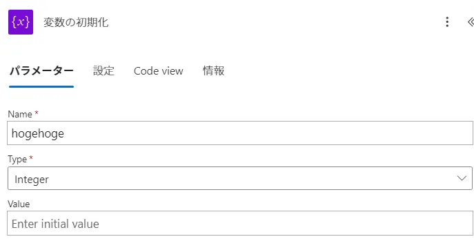 | 「変数を初期化する 1」の変数の名前を、「hogehoge」に変更して |
