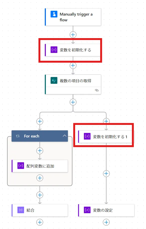 例:変数の初期化アクションが二つの場合