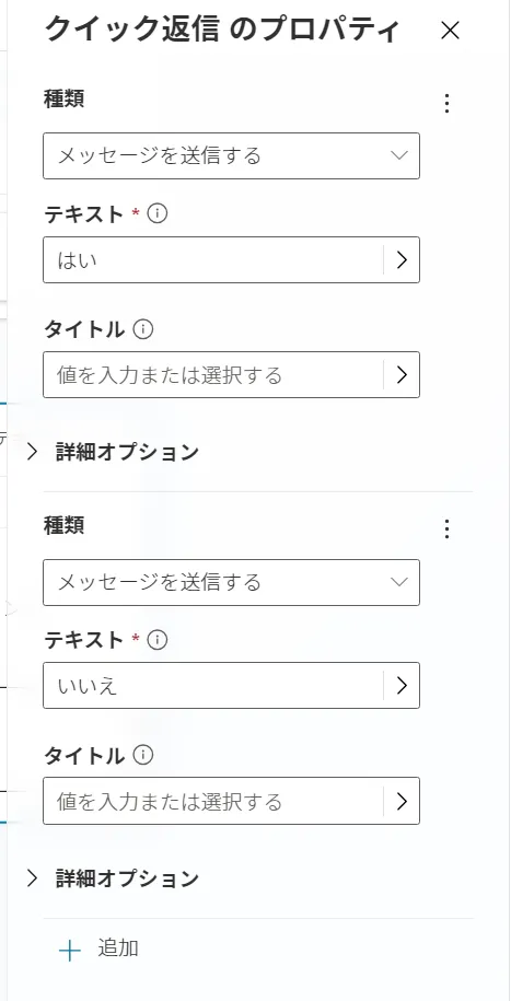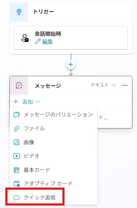 分岐が不要な場合は、「メッセージ」ノード内のクイック返信機能を使用します。