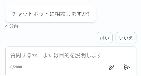 なるべく選択形式で質問することで、意図しない挙動を防ぎ、ユーザーが必要としている情報にたどり着きやすくなります。