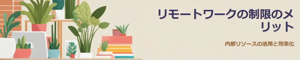 | リモートワークの制限が、社内資源の活用促進・業務効率化に繋がる旨を図解して |
