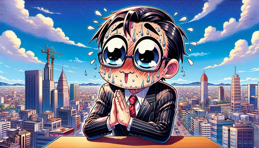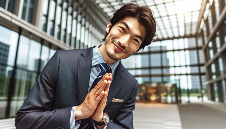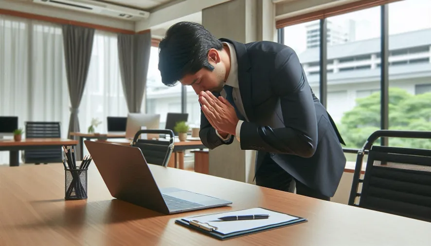 | ビジネスマンがお辞儀しているアニメ調のイラスト作って |