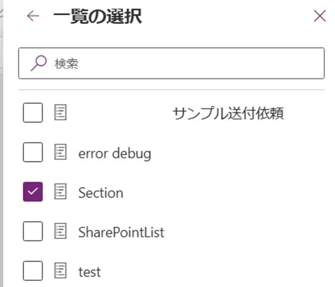 ・リスト名がSectionで、列名がSectionNameの場合
