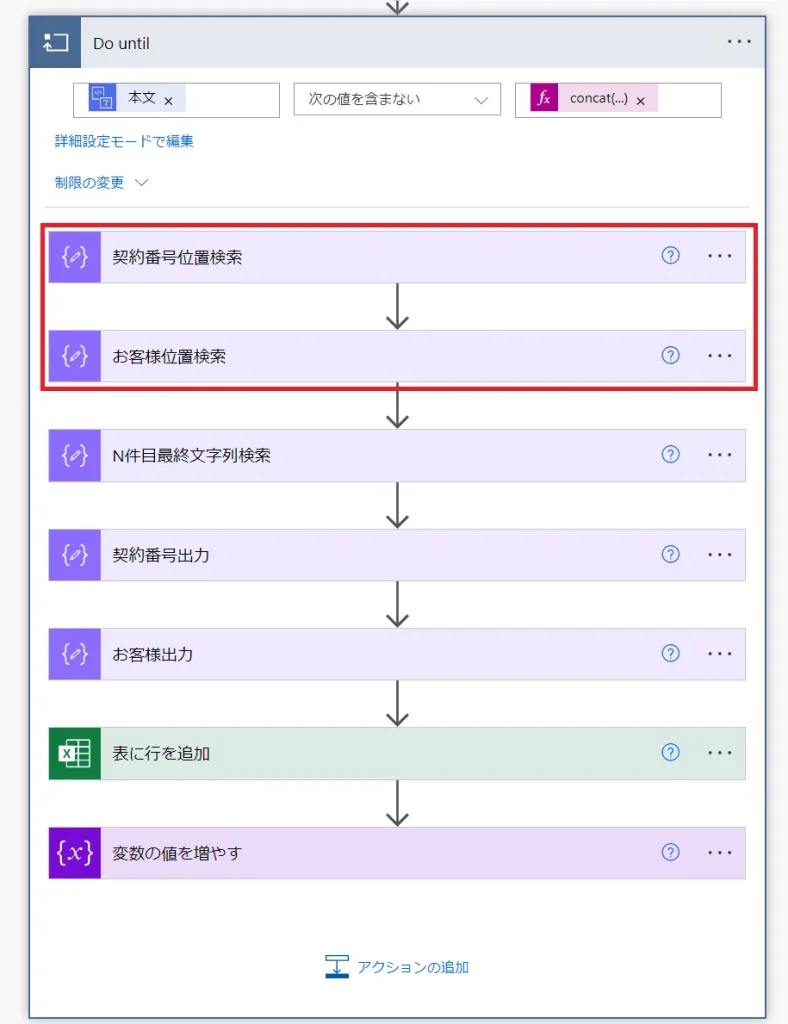 *<Do Until>は正確には「N件目の文字列を含まない」がTrueになったとき、繰り返しが終了します。わかりやすさを優先するため、「検索される文字列が本文に含まれるか」で表現しています。