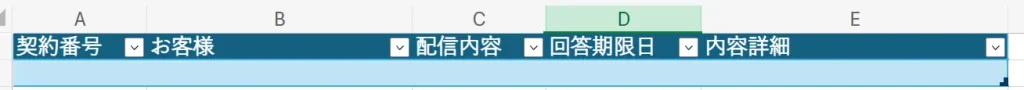 【2件目】の「契約番号」「お客様」「配信内容」・・・で1行と、件ごとに行を分けて転記する。