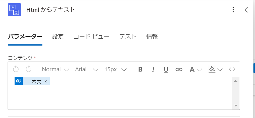| substring(body(‘Html_からテキスト’),add(outputs(‘★出力項目の位置検索アクション名’),8),sub(sub(outputs(‘★次の項目の位置検索アクション名’),1),add(outputs(‘★出力項目の位置検索アクション名’),★項目の文頭の文字数))) |