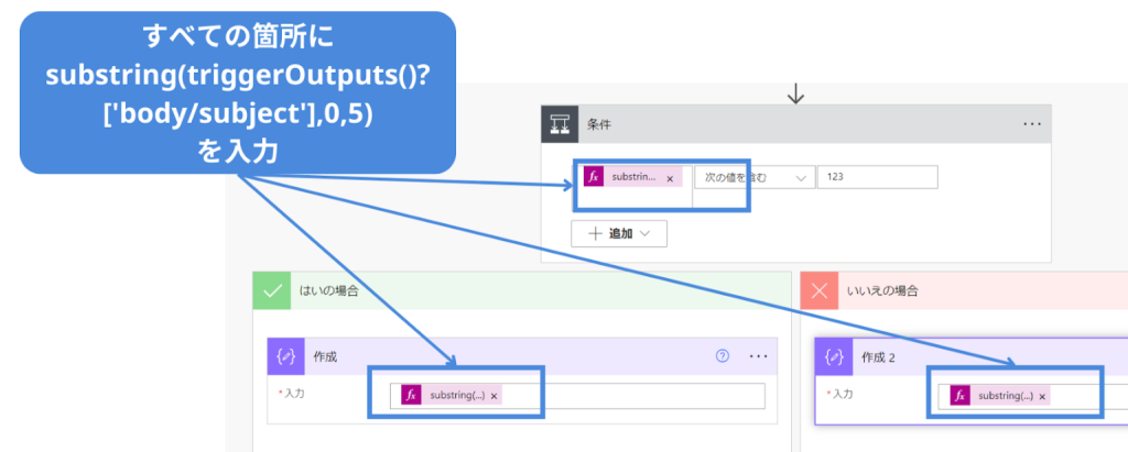 ポイントは、Value内に先ほどの「メールの件名先頭5文字を取得する計算式」を記載することです。